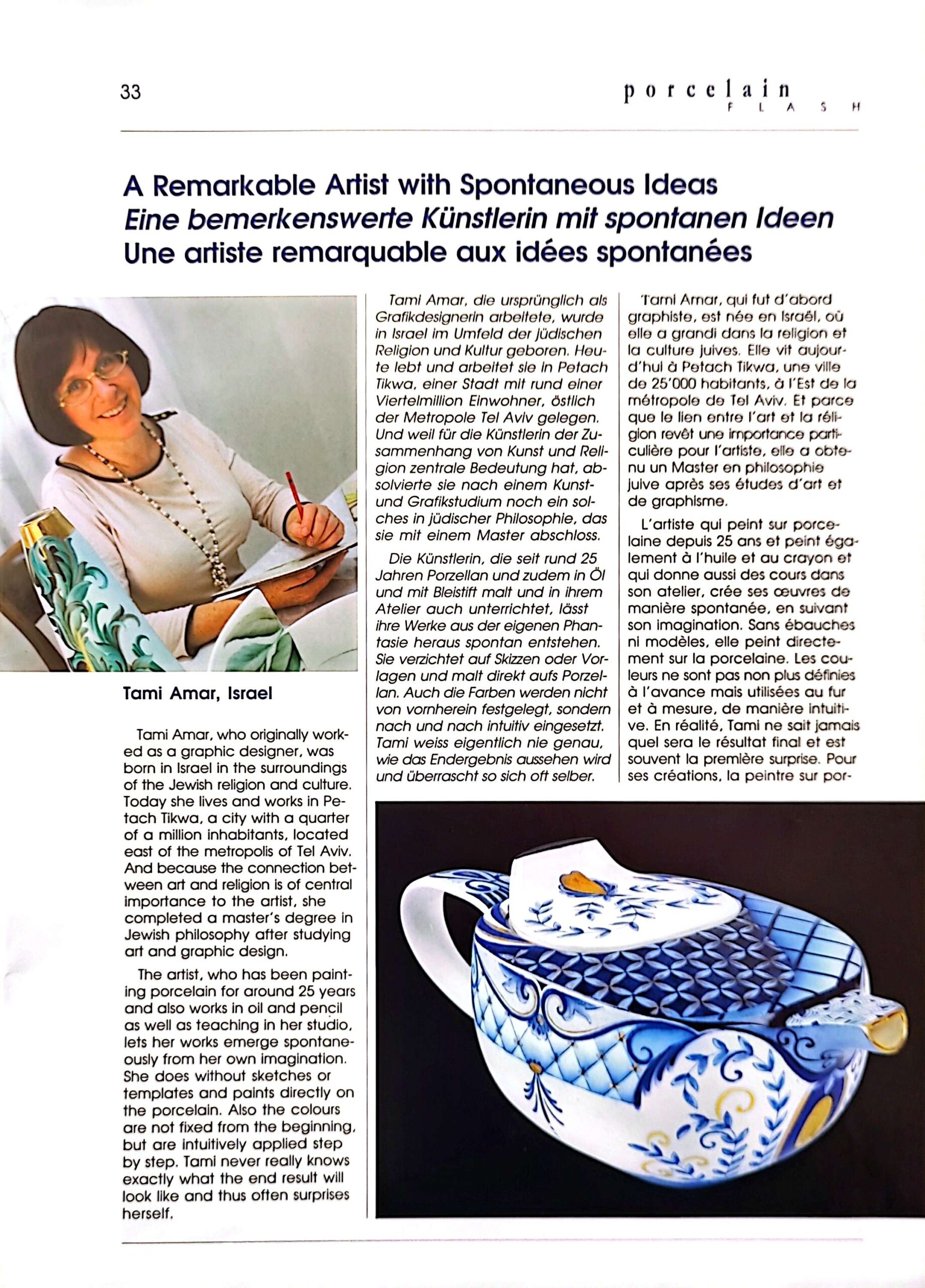 Tami Lior’s art has captured the attention of media outlets worldwide, earning acclaim for her ability to transform brushstrokes into breathtaking works of porcelain art. Her unique creations have been highlighted in renowned publications, celebrating her as a leading figure in bespoke porcelain artistry.